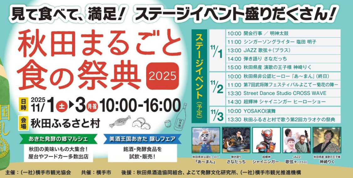 「秋田まるごと食の祭典2025」秋田ふるさと村で11月1日(土)~3日(月・祝)に開催 !